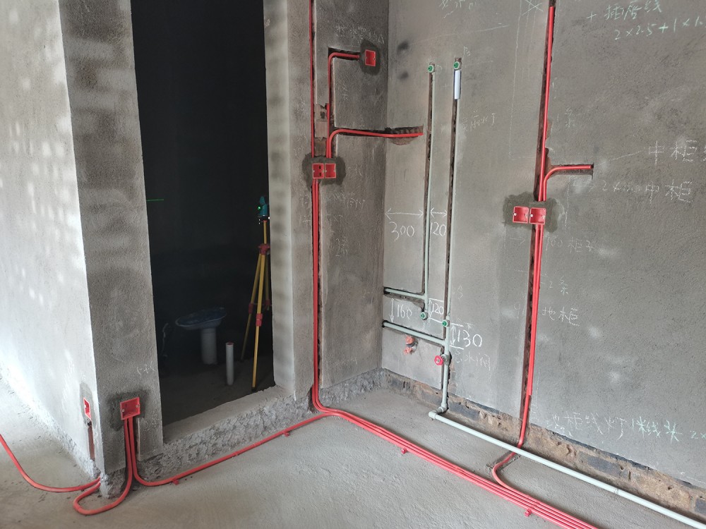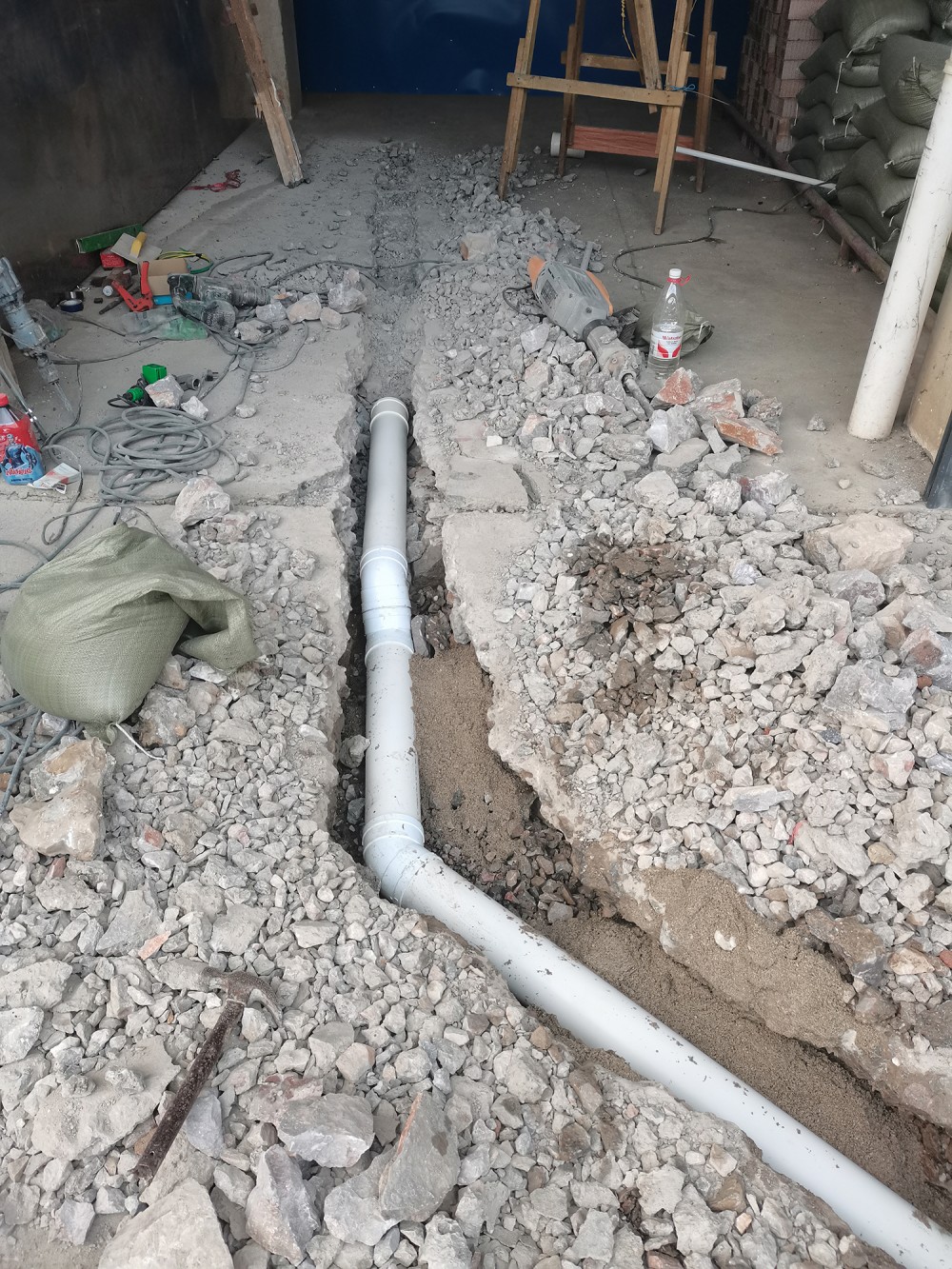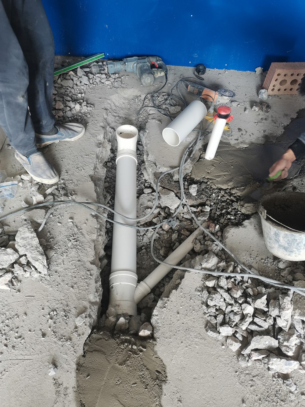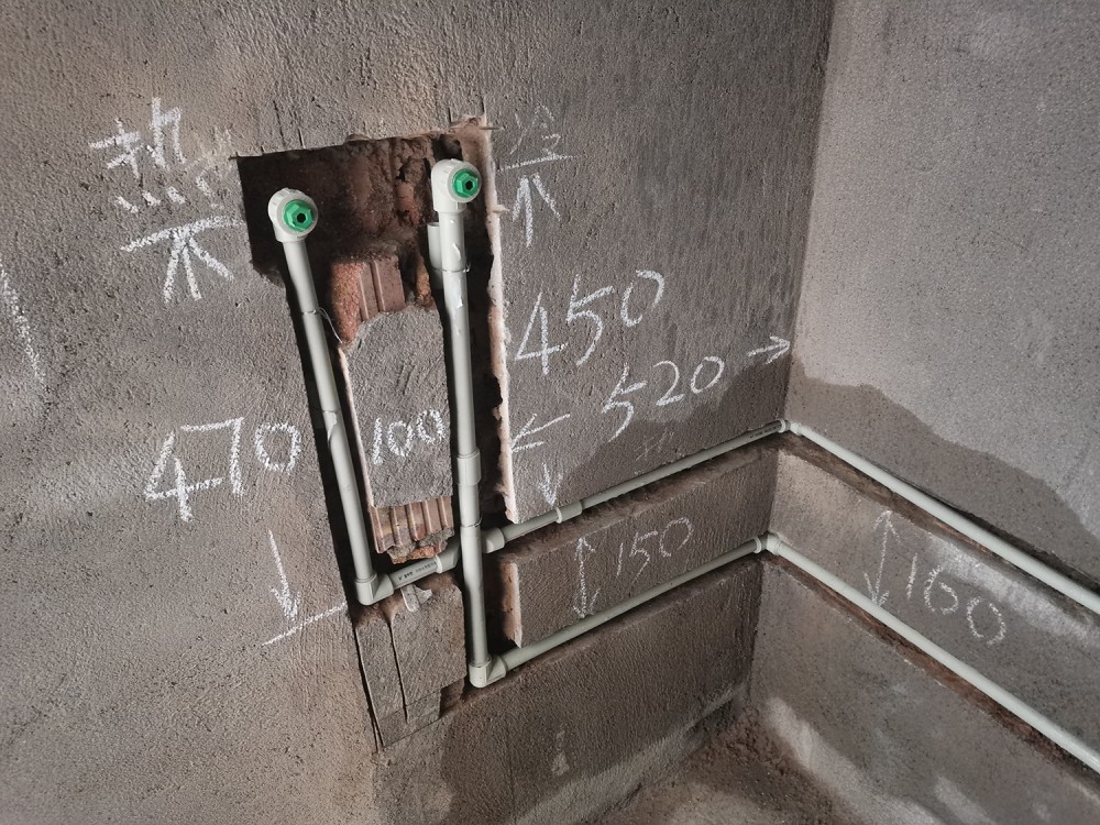 卫生间排污主管引至外面的污水井,增加二次排水和洗手盆墙排。下面是从污井到卫生间的排水管照片。