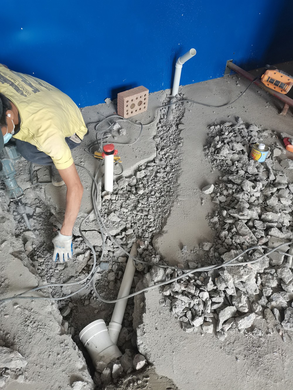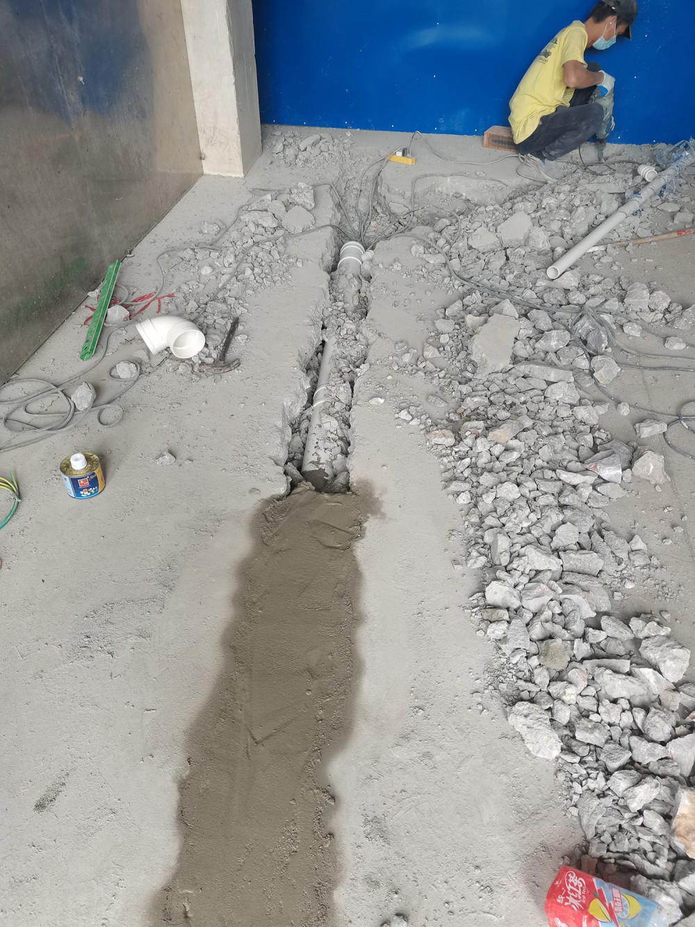 (1)排水管与墙体接触间用堵漏灵抹圆。
