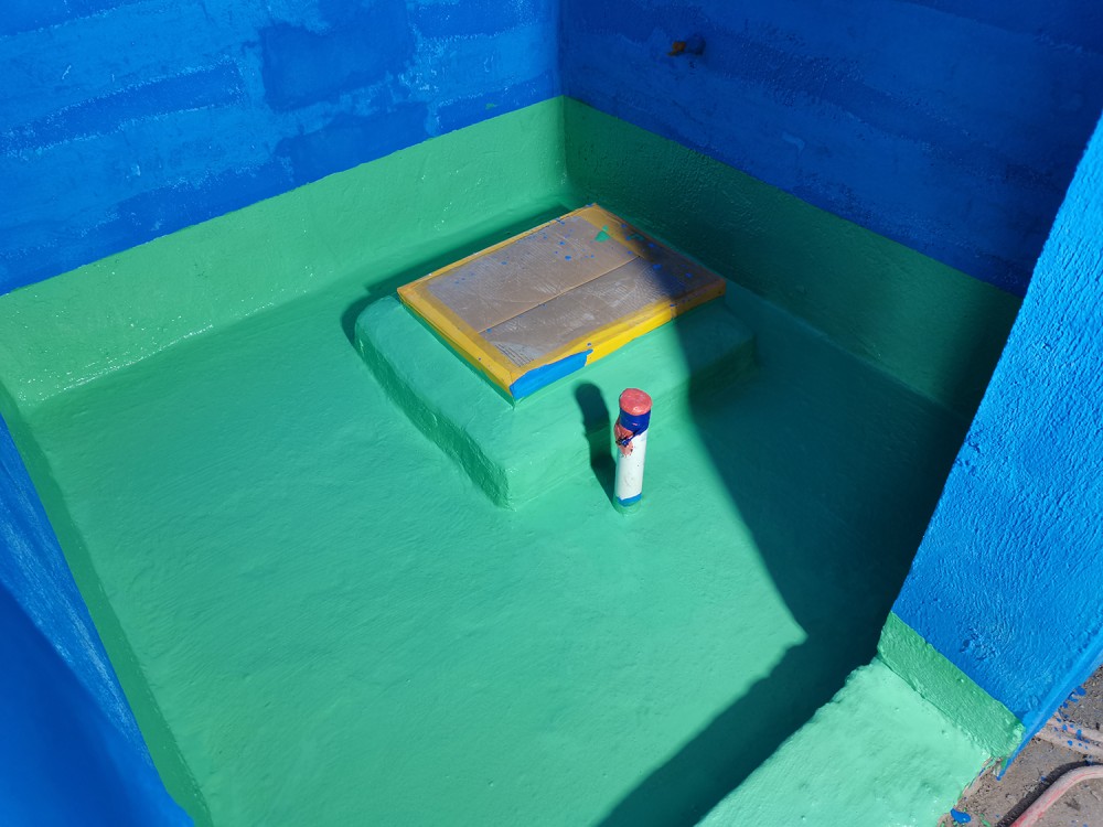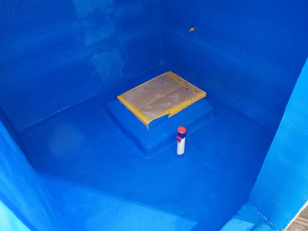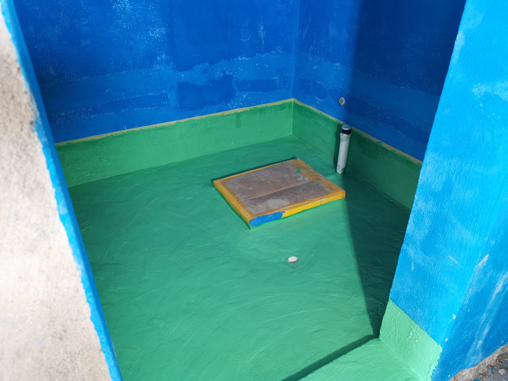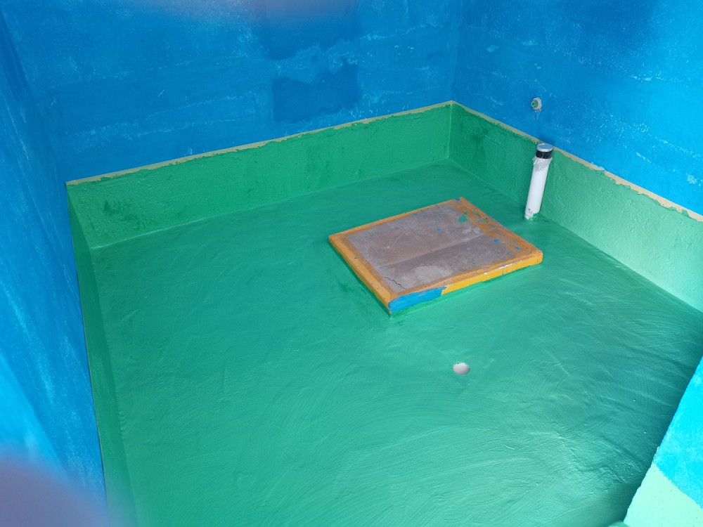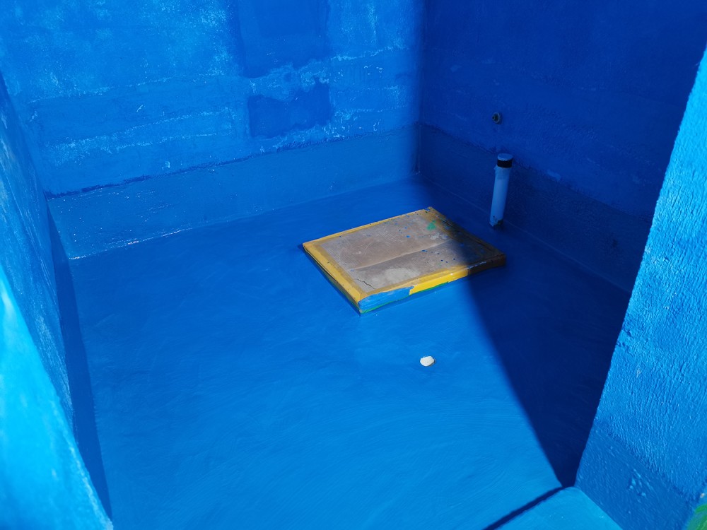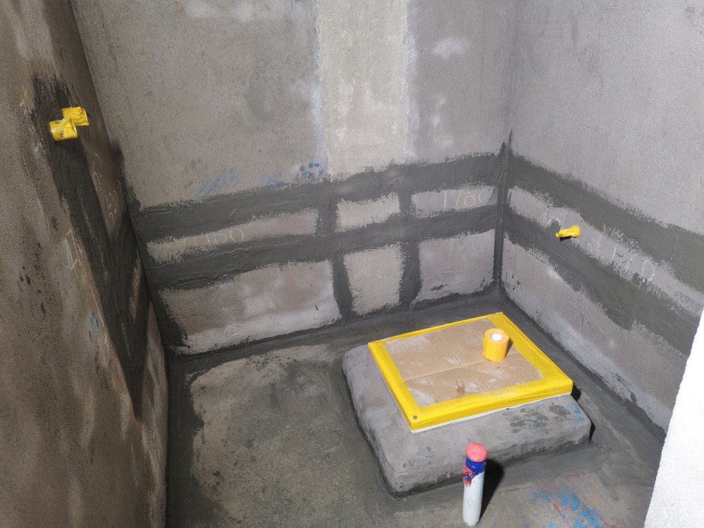 (6)阴角处用堵漏灵抹圆、抹平整,有洞口处用堵漏灵堵好封平,让防水层更好的形成连续保护层。