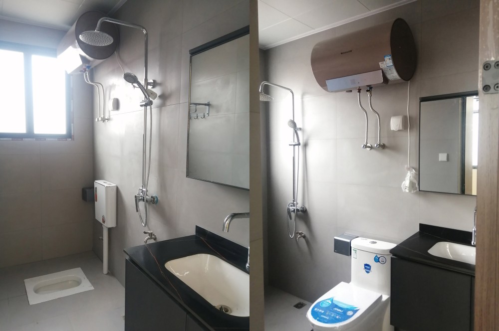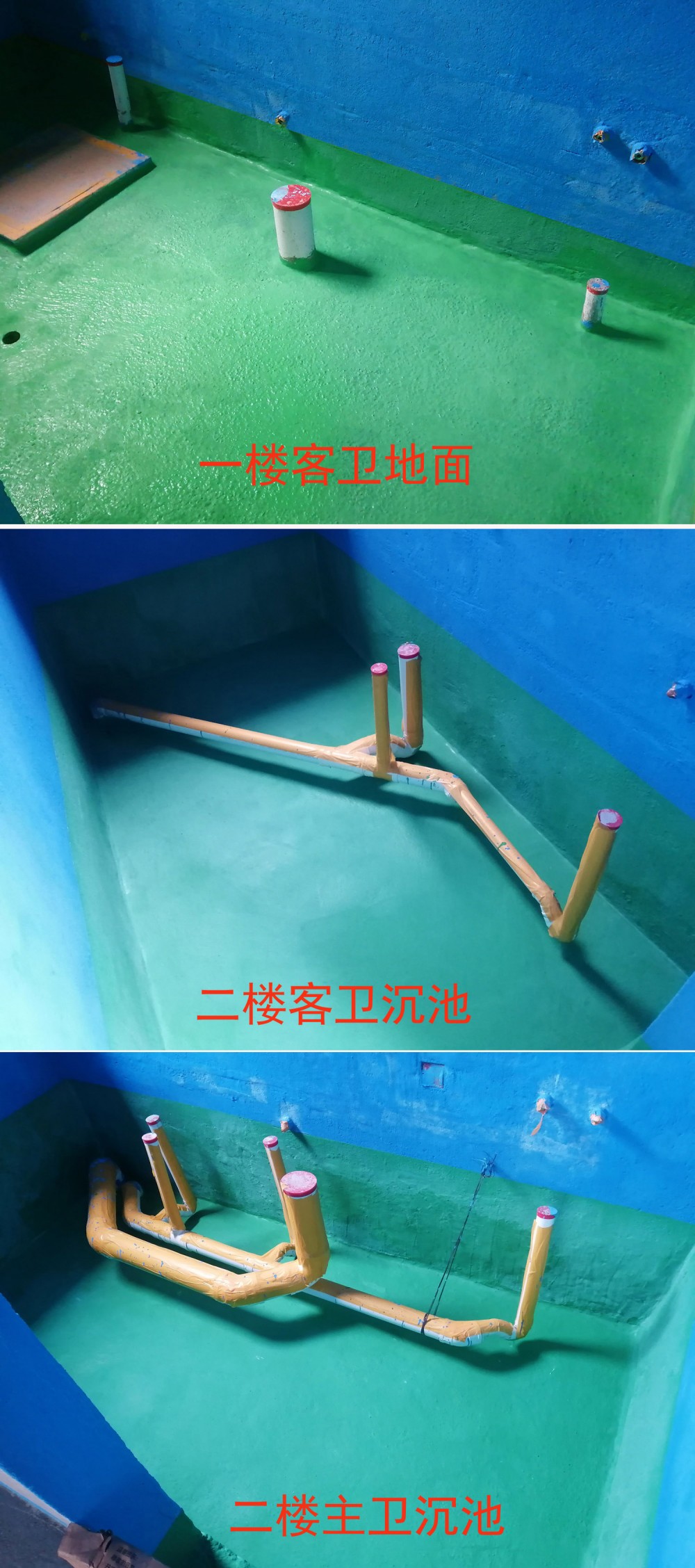 主卫地面找平后留5-6公分(以房间地面为准),客卫地面找平后留3-4公分(以蹲便器表面为准)。